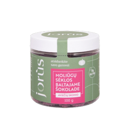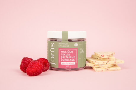 Sudedamosios dalys: 61 % baltasis šokoladas (cukrus, kakavos sviestas, pieno milteliai, saldžiųjų išrūgų milteliai, emulsiklis: lecitinai (sojų), vanilės ekstraktas), 35 % moliūgų sėklos, 1 % aviečių miltelių ant nešiklio (maltodekstrinas, aviečių vaisių koncentratas), vaisių ir augalų koncentratai (saldžiųjų bulvių, ridikėlių, obuolių, vyšnių), glazūravimo medžiagos: arabiko guma, cukrus, medus.