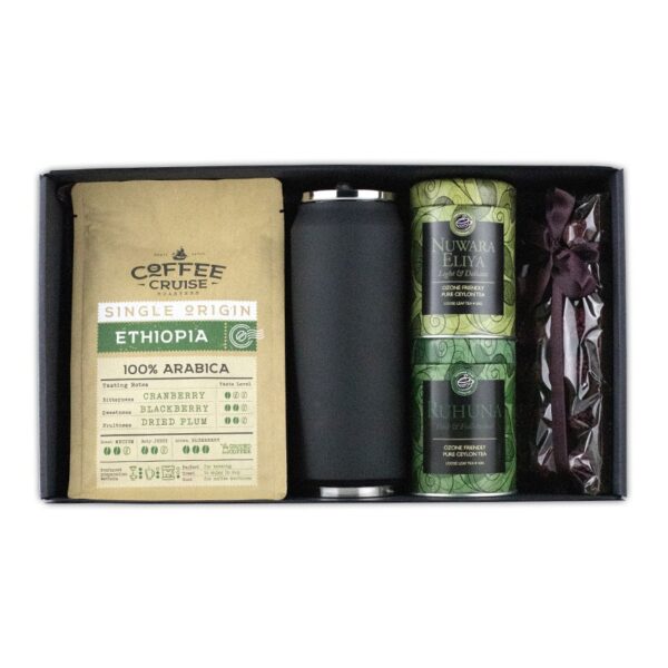 Pasiruošk Kalėdoms su Coffee Loft akimirksniu! Šiuo rinkiniu nustebinsite net ir daug mačiusius. Šviežios Coffee Cruise kavos puodelis šildys žvarbiais žiemos vakarais, o liofilizuotos uogos ant Nelleulla Berry Love rankų darbo šokolado nukels Jus į šiltus vasaros vakarus ragaujant šviežio derliaus uogas. Prie puodelio karšto gėrimo galėsite susėsti ir su savo atžalomis, kadangi rinkinyje rasite dvi itin kokybiškas, pilno lapelio birios juodos regioninės arbatas iš Šri Lankos.