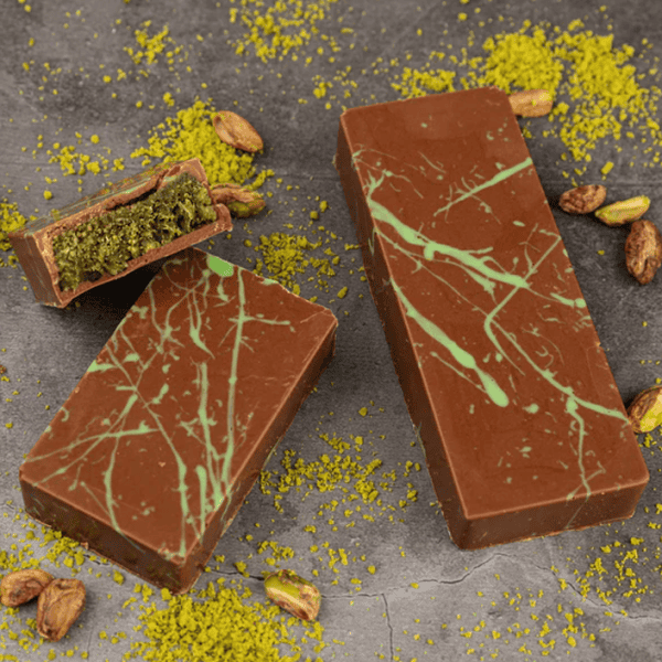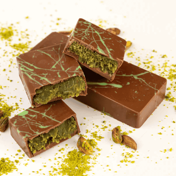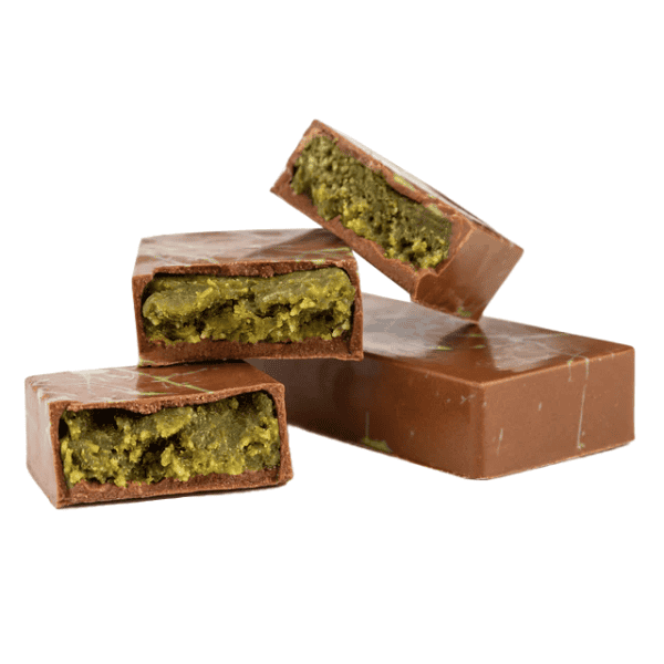 Sudedamosios dalys: pieniškas šokoladas (cukrus, kakavos masė, nenugriebto pieno milteliai, emulsiklis: sojų lecitinas; burbono vanilė), pistacijų kremas (pistacijos 36%, cukrus, saulėgrąžų aliejus, kakavos aliejus, pieno milteliai, išrūgų milteliai, extra virgin alyvuogių aliejus, emulsiklis: sojų lecitinas), Kadayif tešla (kvietiniai miltai, vanduo, kukurūzų krakmolas, saulėgrąžų aliejus, druska, konservantas: kalio sorbatas; emulsiklis: sojų lecitinas), druska, valgomi aukso lapeliai, pistacijos.
