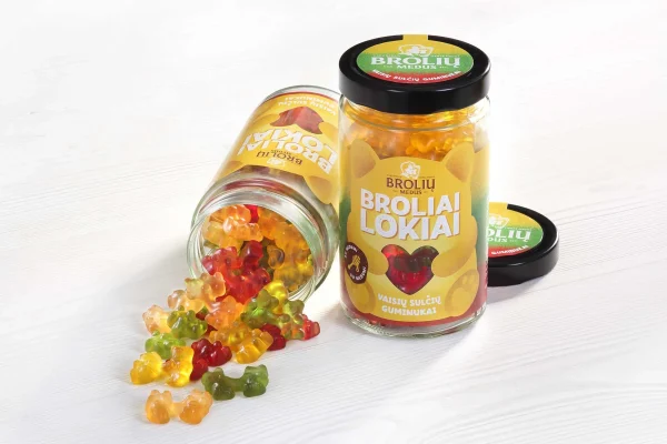 Pasiflorų, obuolių ir aviečių skonio Broliai lokiai guminukų miksas 500g BROLIŲ MEDUS