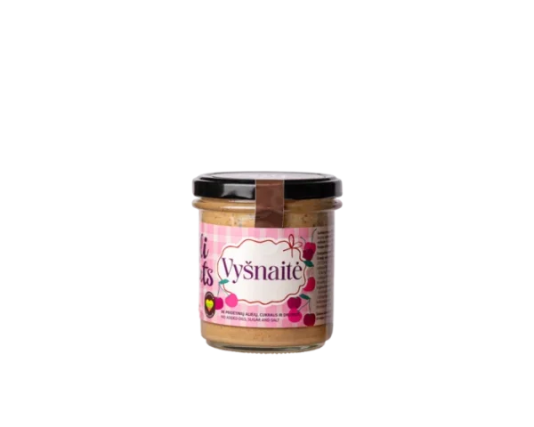 Sudedamosios dalys: kepinti anakardžių riešutai, liofilizuotos vyšnios.