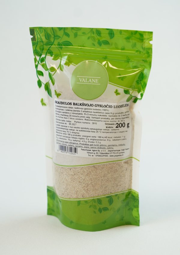 Sudedamosios dalys: balkšvojo gysločio luobelės (100%)