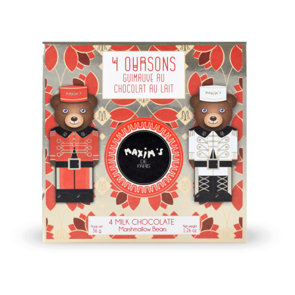 Sudedamosios dalys: gliukozės sirupas, pien. šokoladas (cukrus, kakavos sviestas, nenugriebto pieno milteliai, kakavos masė, emulsiklis: SOJOS lecitinas E322, aromatas – natūrali vanilė, cukrus, vanduo dekstrozė, želatina, vanilė, pieno baltymai, kakavos milteliai.